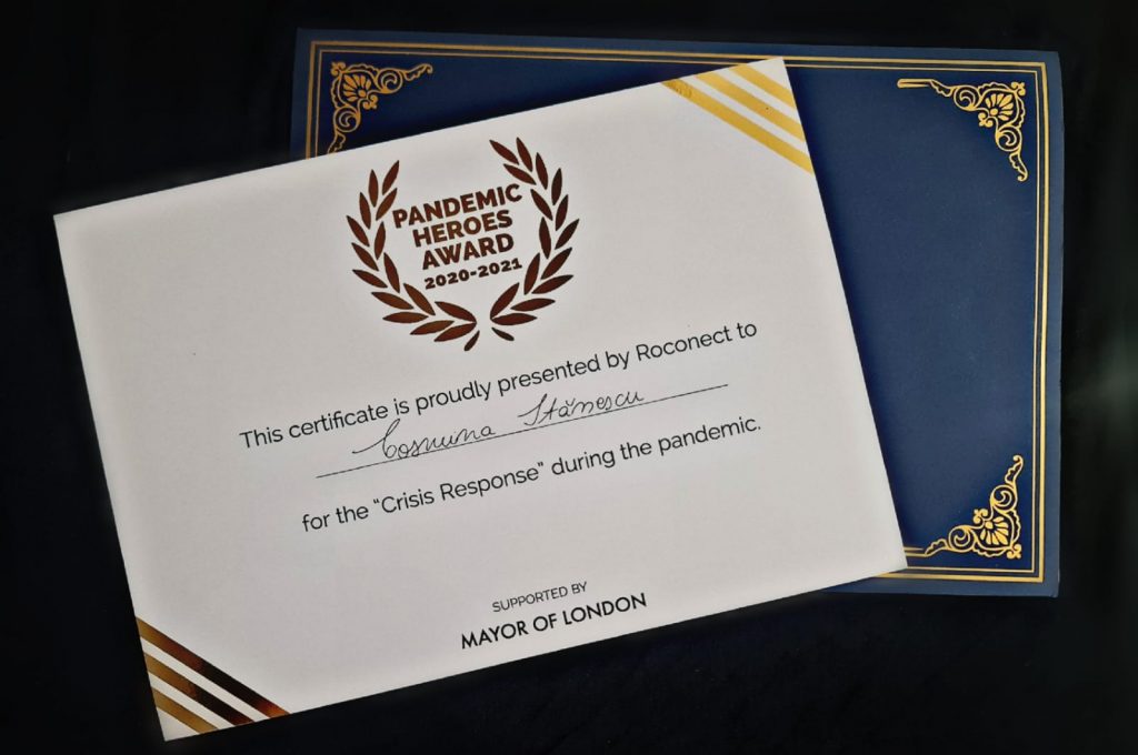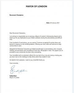 Mayor of London, “Crisis Response” award for our volunteers who have shown extraordinary solidarity in very troubled times for humanity. It is an honour that we were able to make a small difference in the country we live in, joining the efforts of the other volunteers in London and the UK, during the Covid -19 Pandemic.
